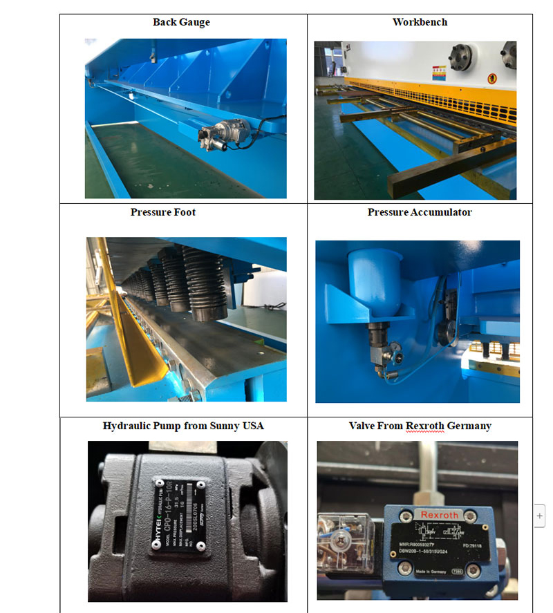 4. Orbita în mișcare a grinzilor lamei se înclină înainte spre suprafața de sprijin a lamei inferioare, astfel încât să puteți obține o suprafață fină de forfecare. Șuruburile de fixare ale lamei superioare asigură o ajustare fină pentru a minimiza „cârpă” sau „bavuri” pe marginea tăiată a materialului. Ansamblul de fixare adoptă arcurile fluture. Există blocuri antiderapante pe călcâi pe dispozitivul de reținere al plăcii de reținere. Presiunea este mai mare, dar nu deteriorează suprafața tablei.