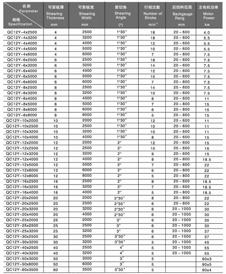 - Unghi de forfecare: 30°~1°30, 30°~1°45, 30°~2°, 30°~2°30, 1°30~3°, 1°30~3°30, 1°30~4 °
