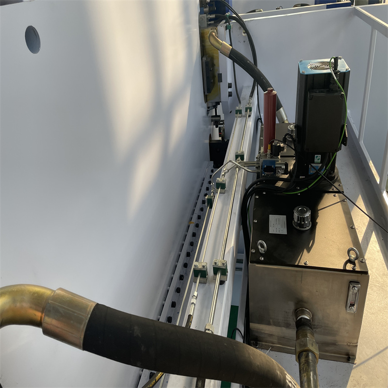 Tip de bază, bară de torsiune, presă frână, sistem E21/E22 cu convertizor de frecvență + reductor și șurub cu bile pentru a controla precizia de funcționare a mașinii.
